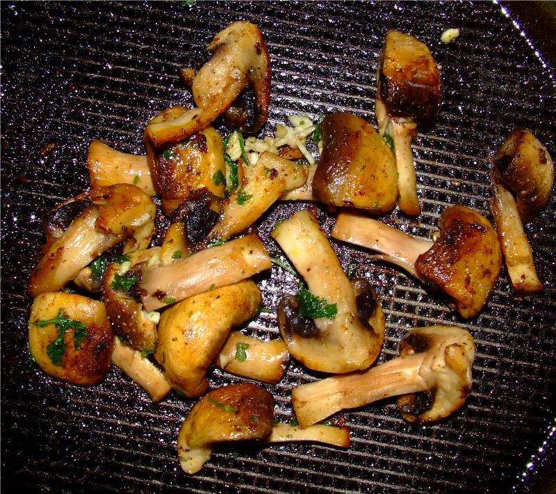4-retirer les tomates de la poêle et réserver, trier les champignons, les couper en quatre et mettre dans la poêle à la place des tomates, saler et poivrer 5-retirer les andouillettes et les échalotes, dans le jus de cuisson saupoudrer la maïzena et déglacer avec le vin blanc, laisser réduire jusqu'à obtention d'une sauce veloutée, rectifier l'assaisonnement 6-hacher l'ail et le persil, en saupoudrer sur les champignons, bien remuer et éteindre le feu 7-disposer dans chaque assiette une andouillette, accompagner de champignons, de tomates et d'échalotes, napper avec la sauce et servir aussitôt |