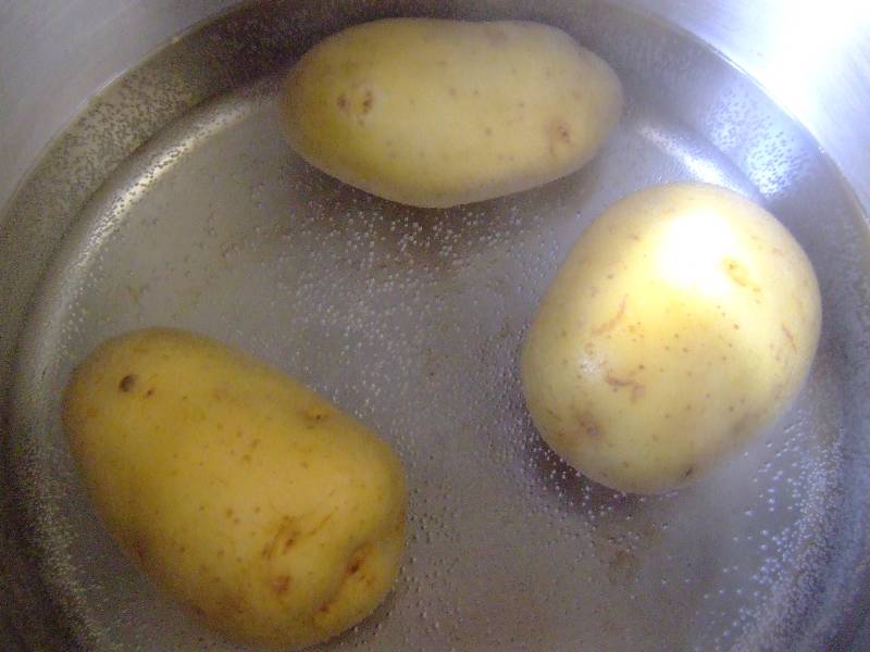 | 4 petites pommes de terre | 2 cuillères à soupe de fond de veau en poudre |