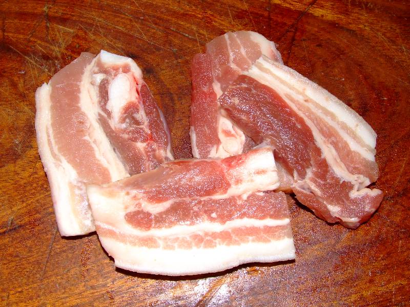 | 4 tranches de poitrine de porc fraîche | 1 branche de persil plat |