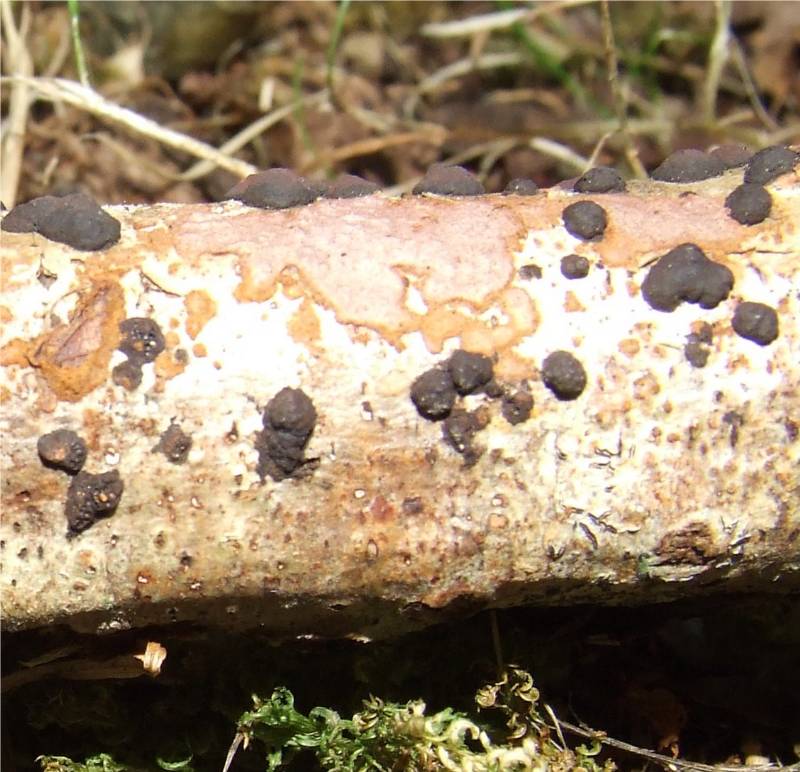 sur branches et rameaux tombés, surtout sur noisetiers et aulnes, automne et hiver |