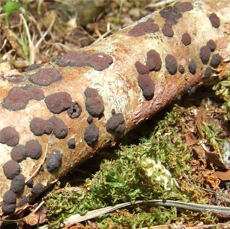 confusion possible avec Hypoxylon fragiforme mais ce dernier est plus gros et de couleur plus claire chez les jeunes sujets, le faisant ressembler avec un peu d'imagination à des fraises |