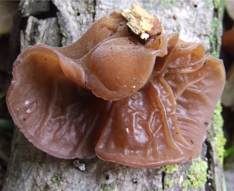 comestible jeune, malgré sa consistance élastique. Très apprécié en Asie, où une variété proche, Auricularia Polytricha, est très cultivée ( c'est le champignon noir ). S'emploie également séché. |