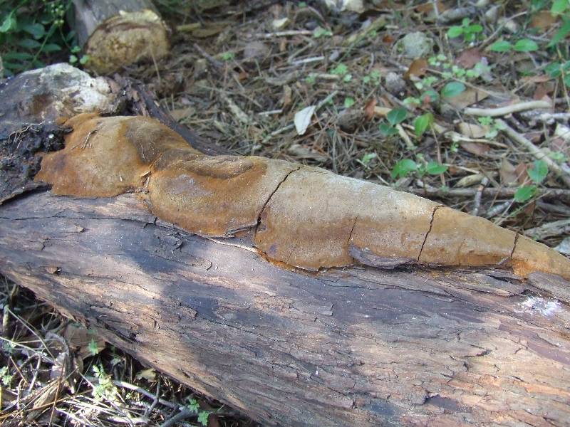 cassante à l'état sec, de couleur brun rouille à brun rougeâtre, tubes