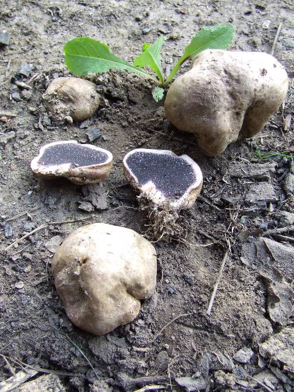 réceptacle d'abord enfoui dans le sol, émergeant à maturité, globuleux, bosselé, large de 4 à 15 cm, blanc puis jaunâtre, à parroi très épaisse, surface plus ou moins écailleuse atténué en pied conique. |
