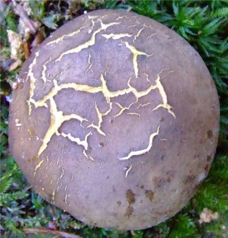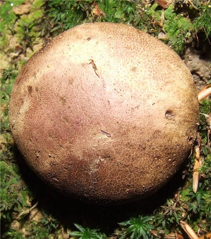 globuleux de 2 à 5 cm de large, enveloppe brun ocré, puis violacé, paroi moyennement épaisse, plus fine vers le sommet. |