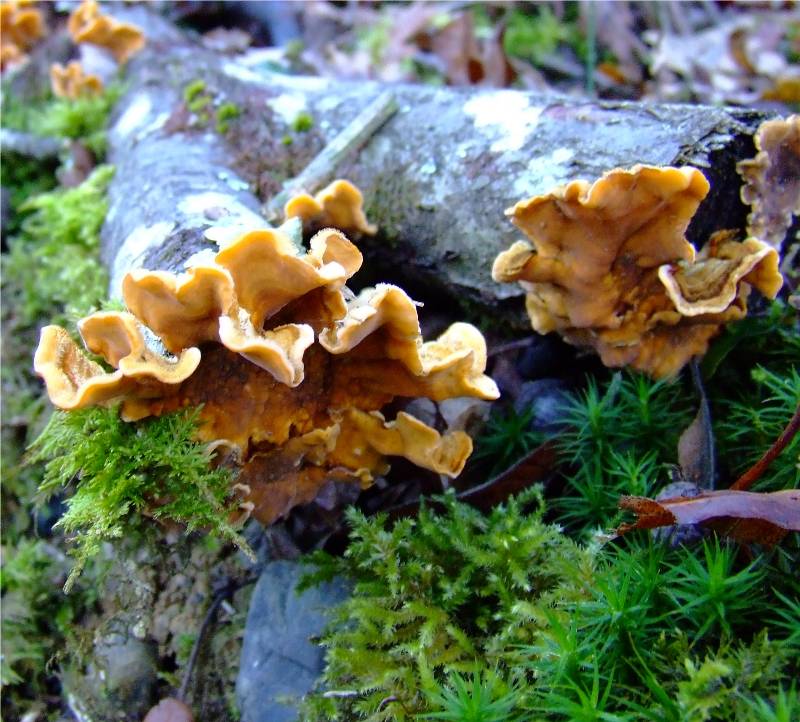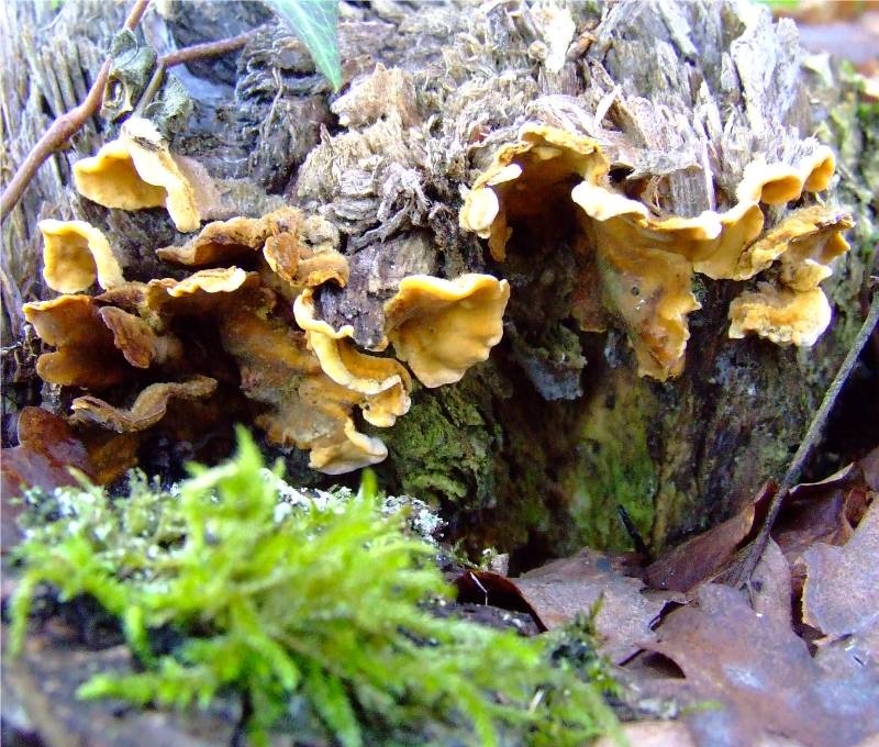 sur souches, bois tombé, sur bois coupé, surtout de feuillus. Toute l' année. En masse étagée ou guirlandes. Très courant. |