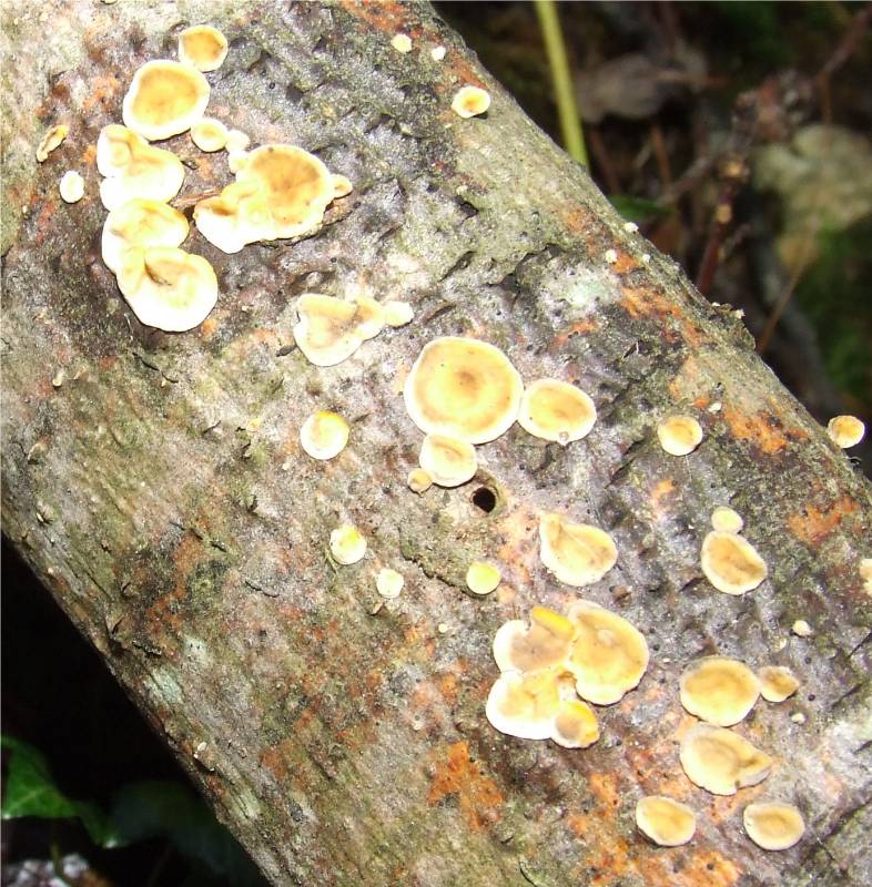 sur feuillus, les troncs morts encore sur pied, sur souches, bois tombé, sur bois coupé, souvent sur noisetiers, bouleaux et aulnes, peut parfois attaquer le bois de construction, toute l' année et parfois subsistant sur plusieurs saisons, très courant.
