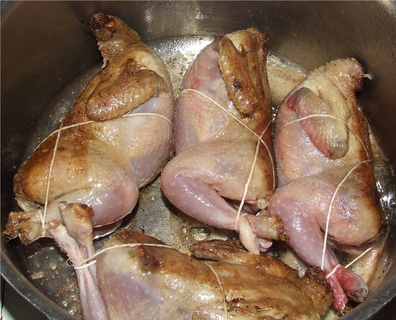 1-plumer, vider, flamber et brider les cailles 2-dans une casserole contenant un peu d'huile