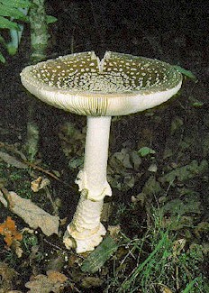 blanc; anneau à mi hauteur, blanc, fugace; bulbe plus ou moins volumineux surmonté d'un ou deux bourrelets. |