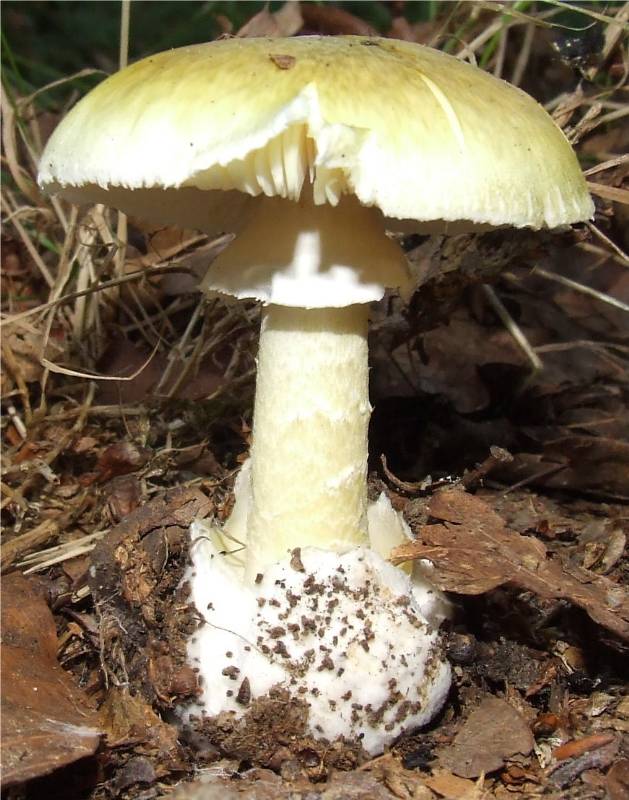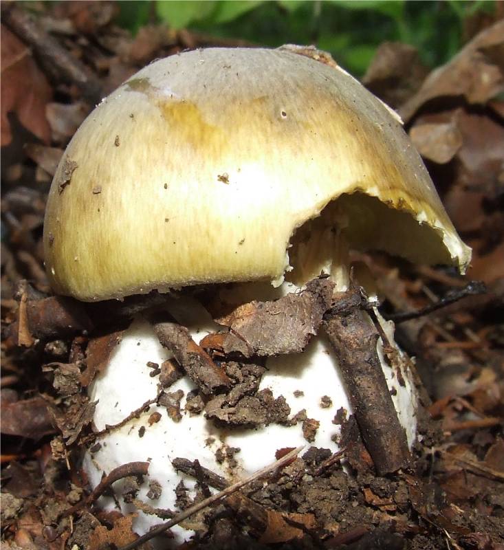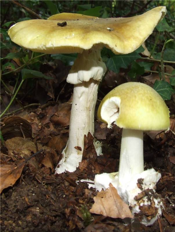 sa couleur pouvant varier d'un spécimen à l'autre, on peut confondre l'amanite phalloîde avec de nombreux champignons comestibles dont: le tricholome prétentieux, l'agaric des bois, la russule verdoyante... |