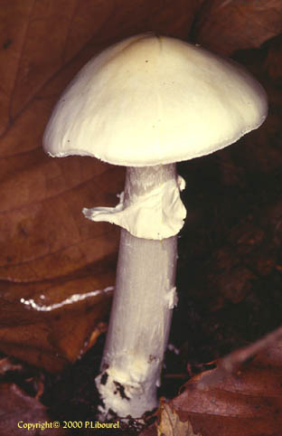 pelucheux; anneau situé très haut, parfois rattaché aux lames; volve blanche. |