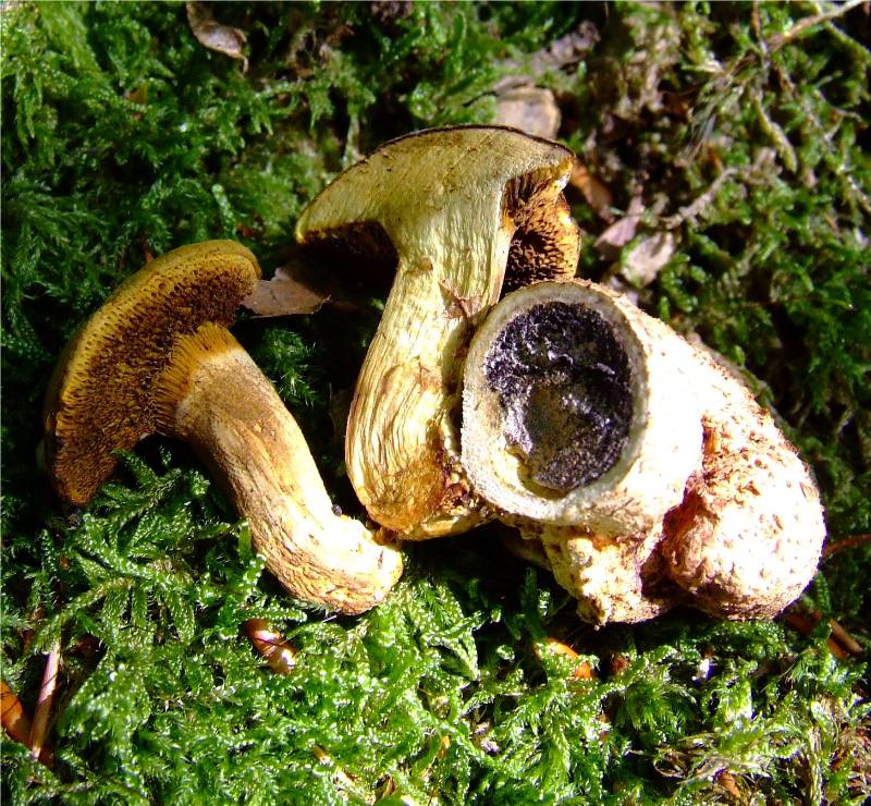 parasite de Scléroderma Citrinum, ce champignon pousse à la base de ceux-ci, par groupe de 2 ou 3 individus, malgré son nom il n'endommage pas son hôte. Sur sol très humide. Eté-automne. Rare |