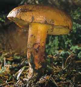 jaune, bleuissant fortement et instantanément à la coupe, puis noircissant. Odeur et saveur agréable. Toutes les parties du champignon bleuissent instantanément au toucher, puis noircissent. |