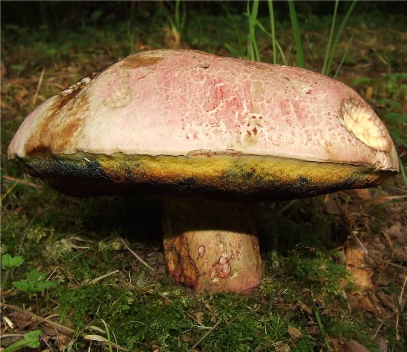 8 à 20 cm (parfois plus), globuleux puis convexe enfin étalé, revêtement feutré ou presque glabre, finement craquelé, rose sâle(vieux rose), souvent cabossé, souvent mêlé de jaunâtre, de rouge vineux, marge excédante |
