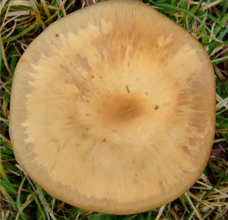 6 à 20 cm de diamètre, beige, plus ou moins plat et mamalonné, puis se creusant en entonnoir |