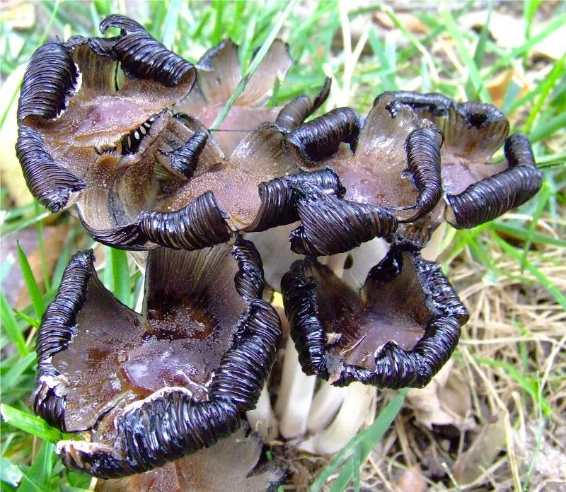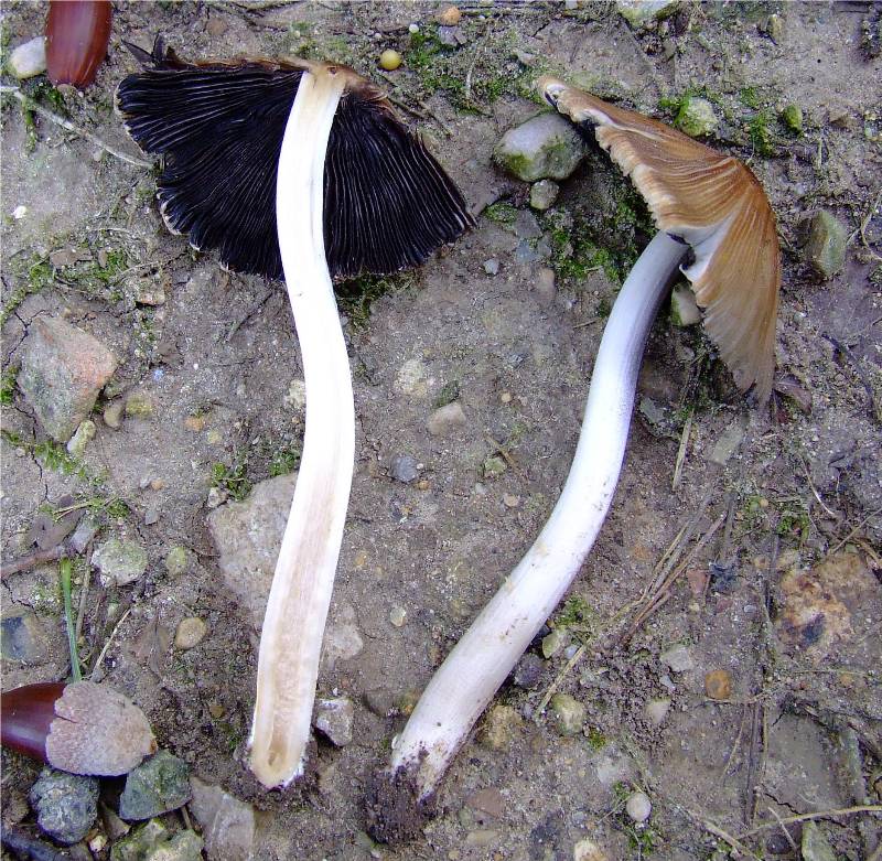 Libres, étroites, blanches qui deviennent noires et deliquescentes par la maturation des spores. |