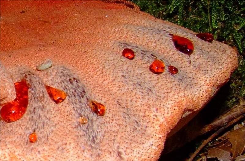 molle, rouge, veinée de sillons plus clairs, laissant s'écouler un suc rouge à saveur salée. |