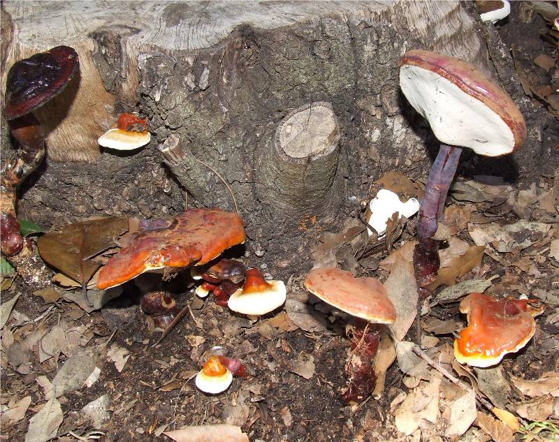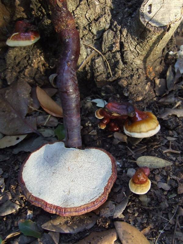 il existe plusieurs espèces proches, dont certaines poussent sur les résineux.Le ganoderme luisant est utilisé en chine à des fins médicinales. |