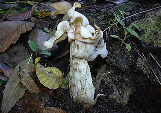 formé de plusieurs lobes, ressemblant plus ou moins à une selle de cheval, blanc crème. |