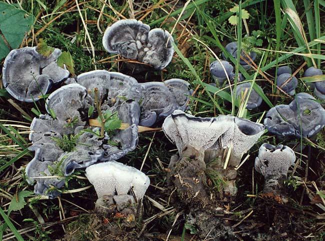 jusqu'à 10 cm, plat ou un peu déprimé au centre, brun-foncé, zonés et recouvert d'un feutrage dense, bordure bleu-gris souvent absente chez les sujets âgés. |