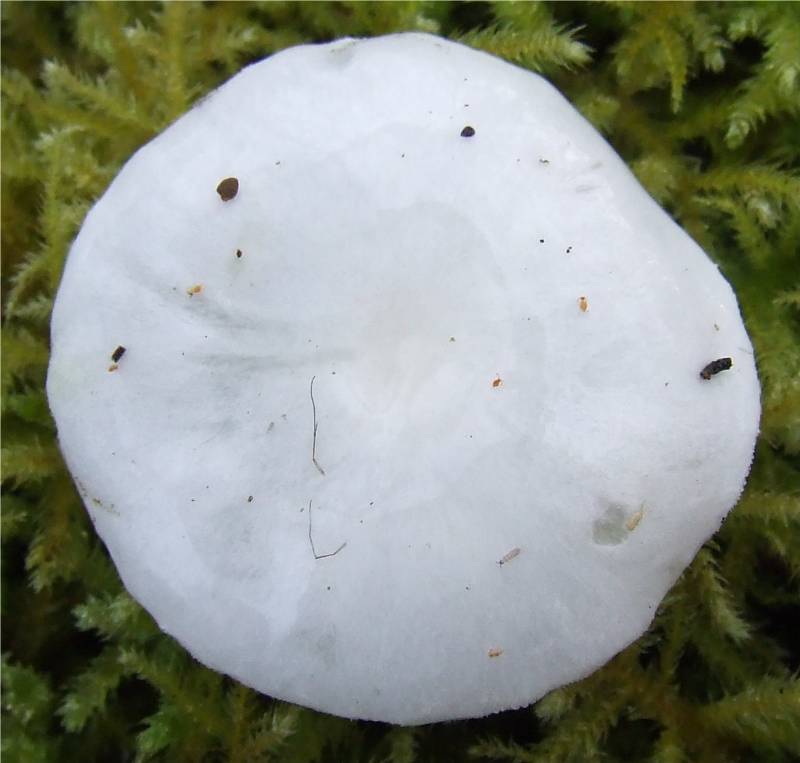 3 à 10 cm de diamètre, blanc pur, virant lentement au jaune très clair avec l'âge, très visqueux par temps humide, hémisphérique ou conique, devenant étalé, marge longtemps enroulée |