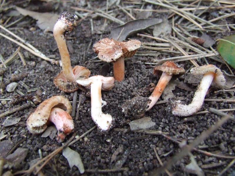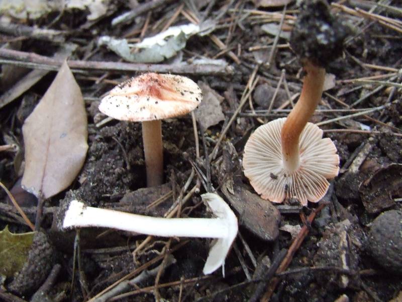 quand il est jeune avec l' inocybe pudique qui est blanchâtre virant au rosâtre et qui n'a pas le pied bulbeux. |