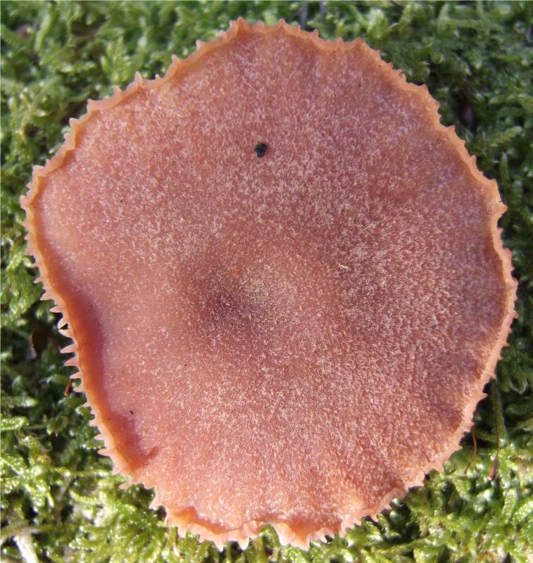 2 à 7 cm de diamètre, un peu écailleux ou feutré, brun rougeâtre ou rosé, s' éclaircissant en séchant, marge souvent dentelée. |