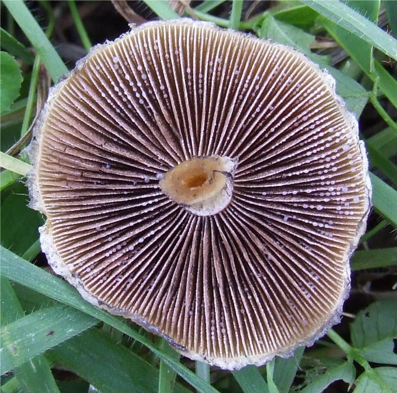 adnées, serrées, brunes à brun-violacé liserées de blanc, émettant au début ou par temps humide d'abondantes gouttes transparentes à laiteuses. |
