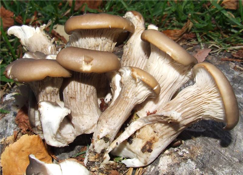 sur la base des troncs ou souches de feuillus et parfois de conifères.En touffes étagées de chapeaux imbriqués. |