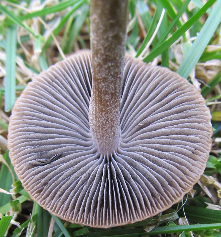 adnées, larges, espacées, brun clair puis marbrées de noir, à arêtes blanchâtres. |
