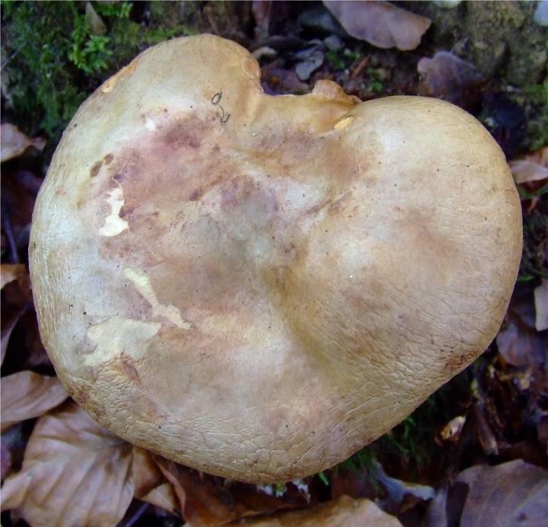 5 à 15 cm de diamètre, parfois plus, à marge longtemps recourbée vers le bas, fauve-roux ou brun-jaune. |