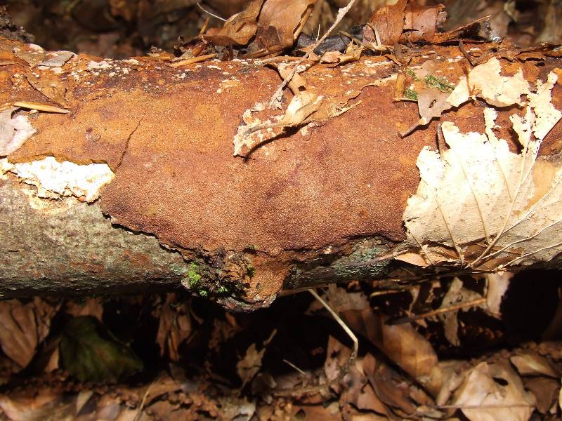 sur la face inférieure humide de branches tombées, surtout hêtre, noisetiers et charmes, toute l'année, courant |