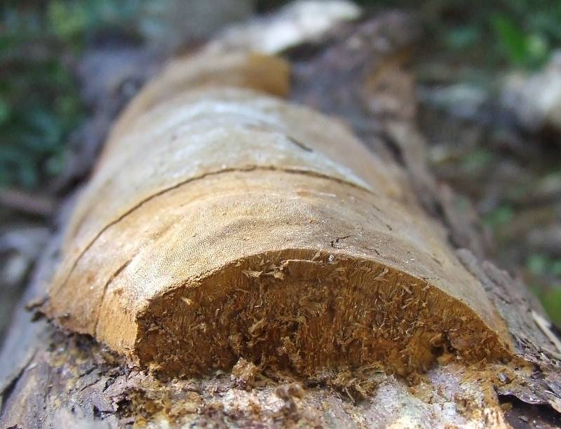 cassante à l'état sec, de couleur brun rouille à brun rougeâtre, tubes