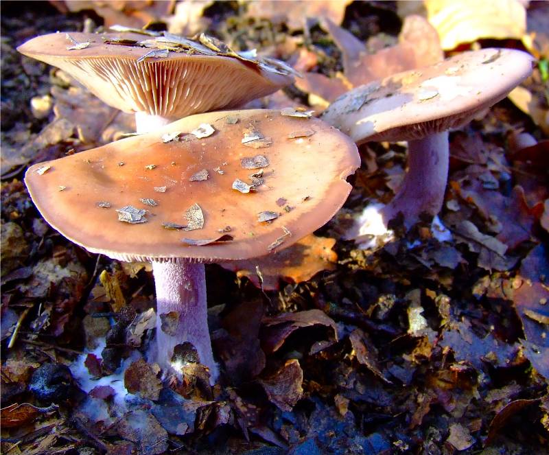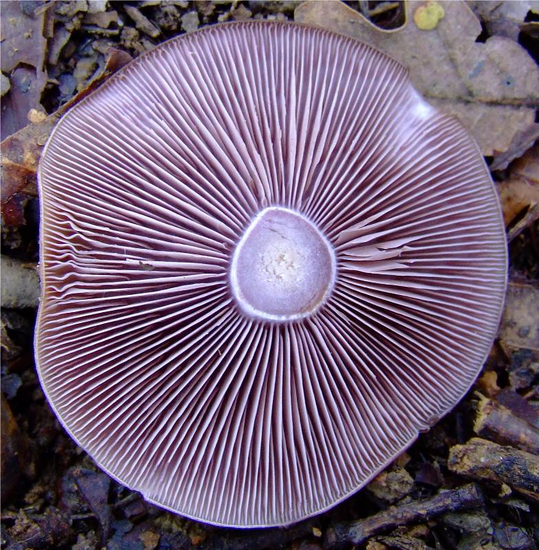 5 à 20 cm de diamètre, épais, bleu-violet, devenant brun-roux sous la pluie, avec l'âge et par temps humide |