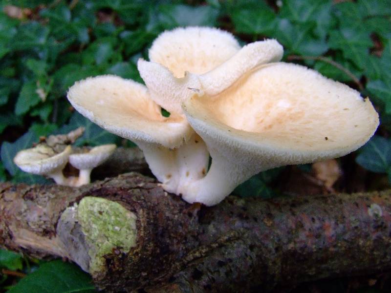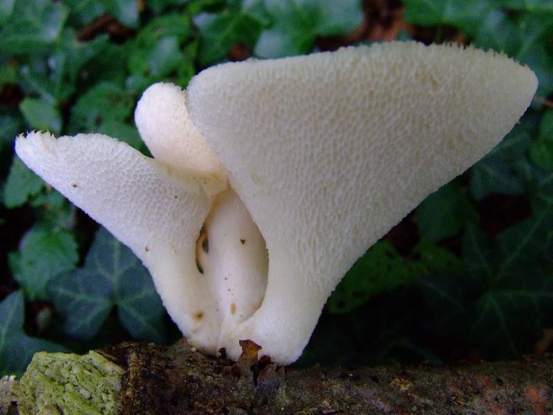 concolore au chapeau, central ou excentrique, souvent courbe, évasé au sommet, plein, blanc, puis blanchâtre, hérissé de poils et d'aspérités floconneuses, plus ou moins réticulés sous les tubes, non séparable du chapeau |