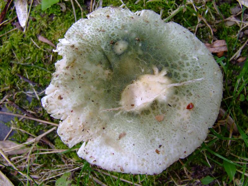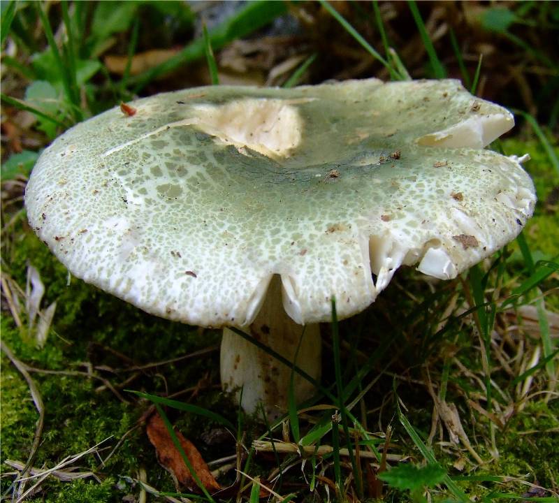 la russule verdoyante est facile à identifier, toutefois il faut se méfier de l' amanite phalloïde qui peut avoir un chapeau verdâtre mais cette dernière possède un anneau et une volve et est mortelle. |