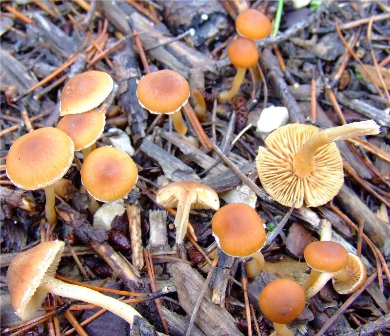 sur débris ligneux. Automne-hiver. En groupes de nombreux individus formant un tapis. Courant. |