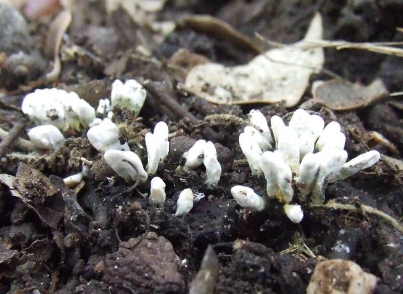 de 2 à 8 cm d' abord en forme de petits pilons, puis en arbuscules plus ou moins ramifiés tels des bois de cervidés, noir à la base et sommet blanc poudreux, devenant entièrement noir avec l'âge, coriace et profondément implantés dans leur support. |
