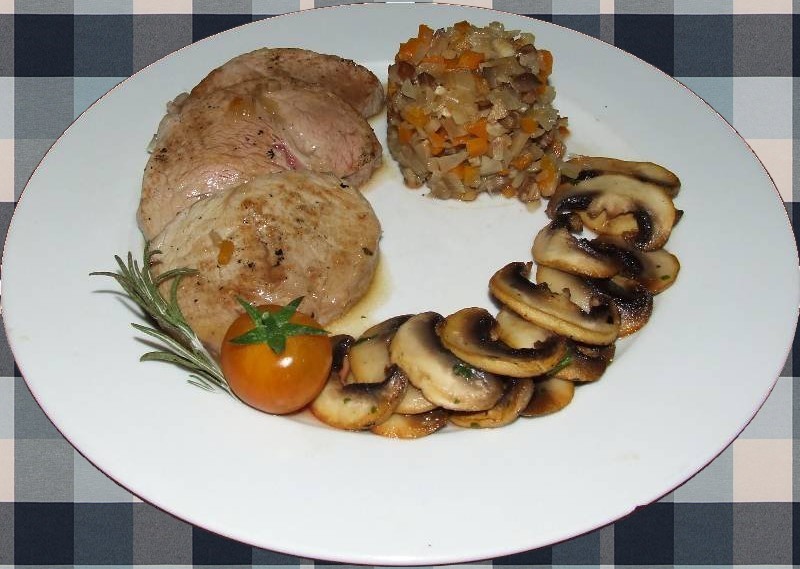 5-pendant ce temps, nettoyer, trier et couper les champignons en lamelles 6-faire sauter les champignons dans une poêle contenant un peu de beurre, quand les champignons sont bien dorés, les saler, parsemer de persil ciselés et réserver 7-remettre un peu de beurre dans la poêle, et faire dorer les grenadins 5 minutes sur une face, saler, les retourner saler et faire cuire 3 minutes sur l'autre face 8-rectifier en sel et en poivre l'assaisonnement de la sauce 9-mettre les grenadins dans des assiettes chaude, accompagner de champignons sautés, du mélange oignon, poitrine, carotte, napper de sauce et servir aussitôt Vin conseillé: Bordeaux blanc |