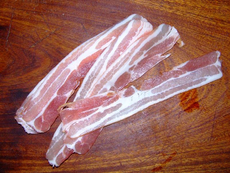 6 fines tranches de lard fumé | 1 brin de romarin |