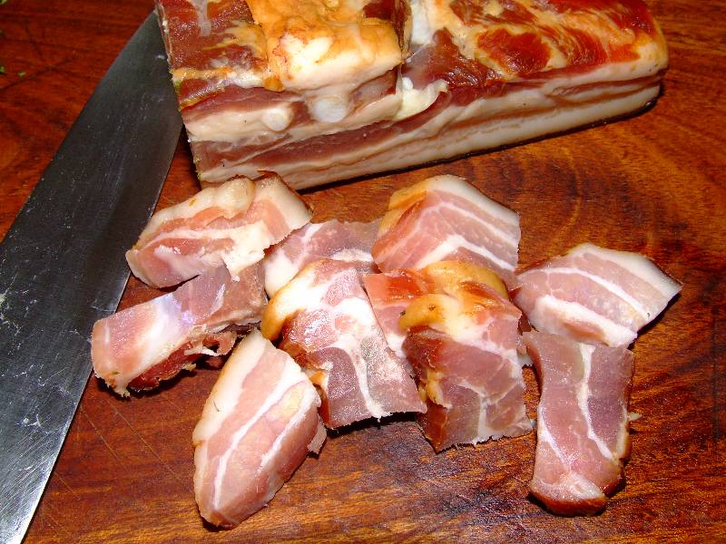 1 tranche épaisse de jambon cru, 1cm environ | 1 feuille de laurier |