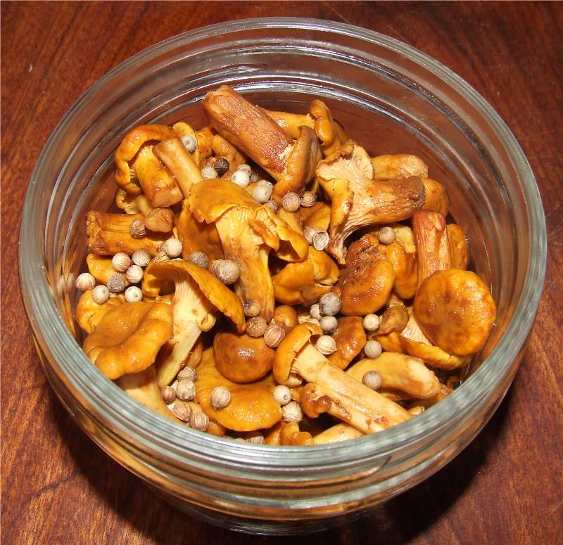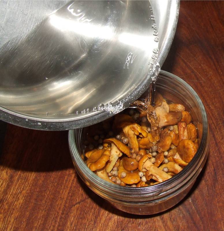 Nettoyez soigneusement les champignons de préférence de petite taille, les blanchir à l'eau bouillante salée pendant 3 minutes. Après les avoir égouttés les placer dans un bocal, arrosez avec du vinaigre d'alcool bouilli, mettre du poivre blanc, des grains de coriandre, de l'estragon, de l'échalote ou quelque petits oignons épluchés.Bouchez hermétiquement le bocal et laissez macérer un mois avant de consommer.