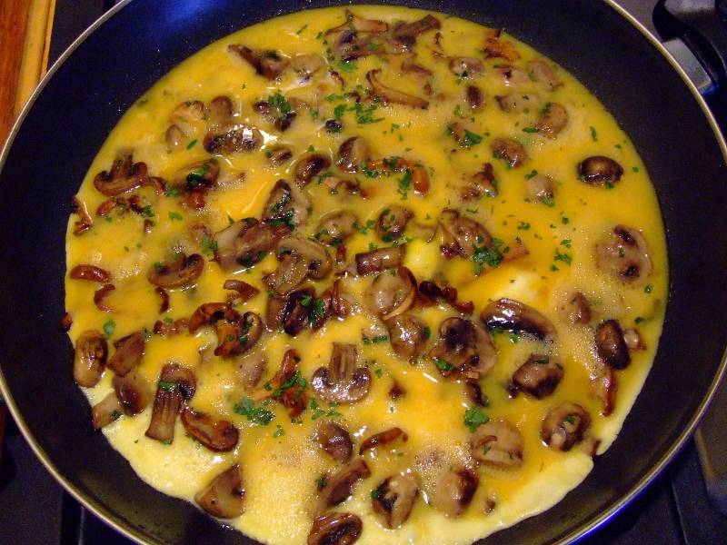 4-battre les oeufs dans un saladier, saler et poivrer 5-verser les oeufs sur les champignons 6-quand le bord de l'omelette est bien doré, et le dessus encore un peu "baveux" faire glisser sur le plat de service et servir aussitôt. vin conseillé: Côte de provence rouge léger |