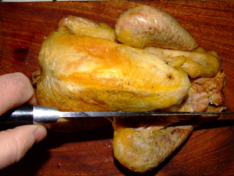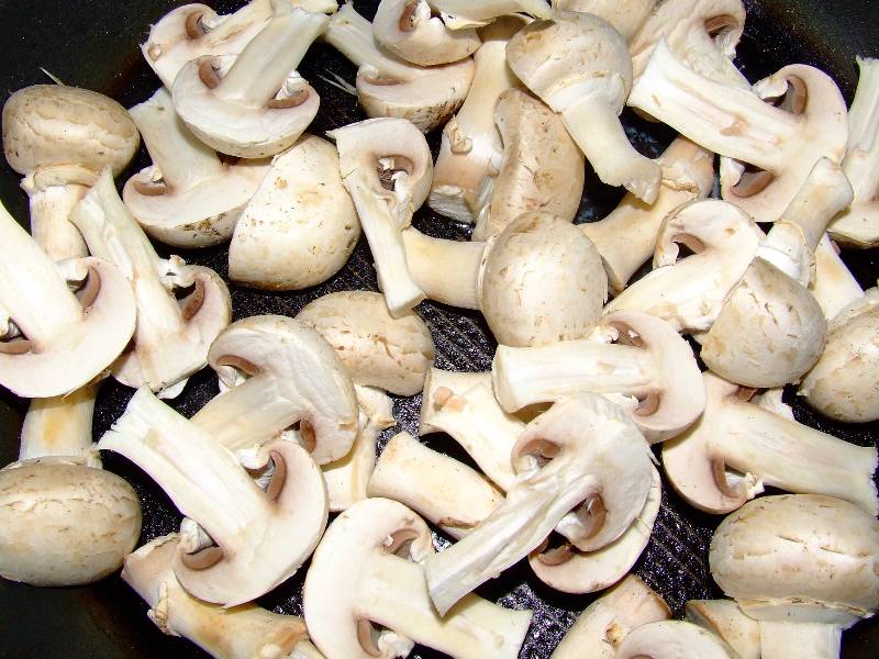 1-faire tremper les girolles dans 25 cl d'eau tiède, pendant 30 minutes 2-saler et poivrer l'intérieur du pintadeau et y glisser 4 gousses d'ail, l'embrocher, l'enduire d'un peu d'huile, saler l'extérieur et mettre au four à 220° pendant 45 minutes au dessus d'un plat pour récupérer le jus de cuisson, arroser tout au long de la cuisson 3-pour la sauce, mettre les girolles et leurs eau de trempage filtrée dans une petite casserole, saler légèrement, mettre sur feu moyen et faire cuire à petit frémissement jusqu'à la fin de cuisson du pintadeau 4-pendant ce temps, nettoyer les champignons de paris, couper le bout terreux du pied, laisser les petits entier, couper les moyens en deux et les gros en quatre vin conseillé: Côte du Rhône rouge |