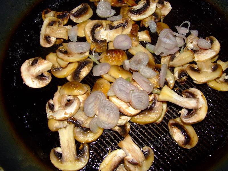 1-rincer sous un filet d'eau fraîche les pommes de terre, les mettre dans une casserole d'eau bouillante salée, et faire cuire 20 minutes 2-pendant ce temps, faire cuire dans une autre casserole d'eau salée les asperges pendant 10 minutes, puis les égoutter et réserver 3-nettoyer les champignons, les trier, les couper en lamelles épaisses, éplucher l'échalote et couper en fine lamelles 4-dans une poêle avec un peu d'huile, faire cuire les pavés de saumon 2 minutes sur une face, saler, les retourner et faire cuire 1 minute sur l'autre face, saler et réserver au chaud 5-égoutter les pommes de terre, les peler, les couper en rondelles et réserver |