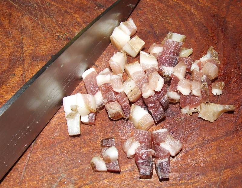 1 tranche de poitrine de porc salée | 1 cube de bouillon de volaille |