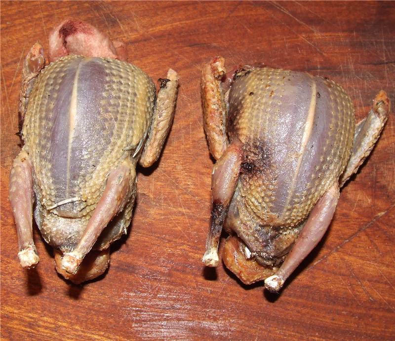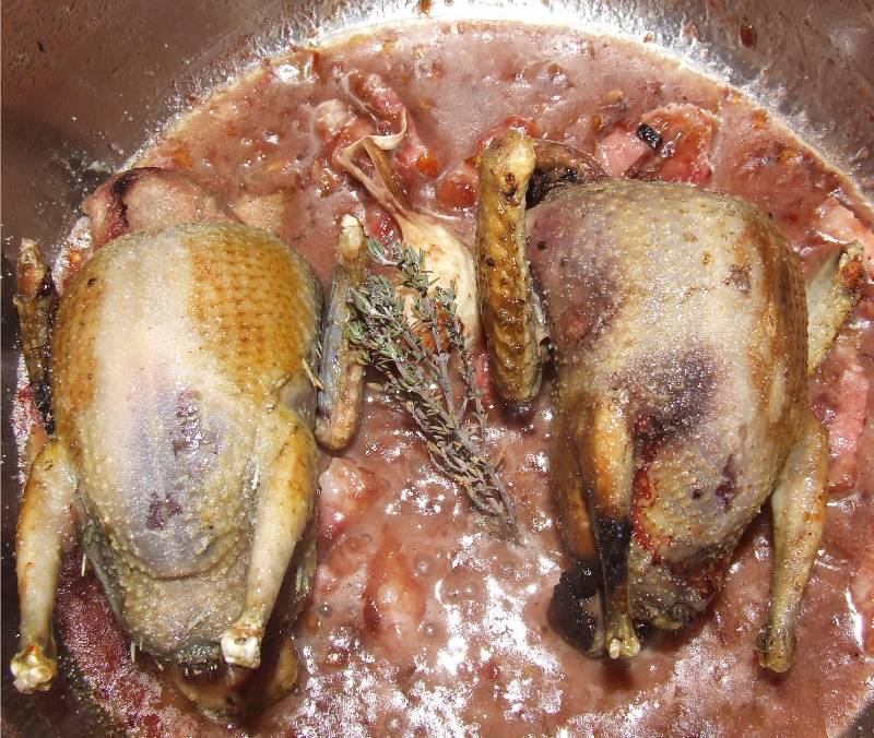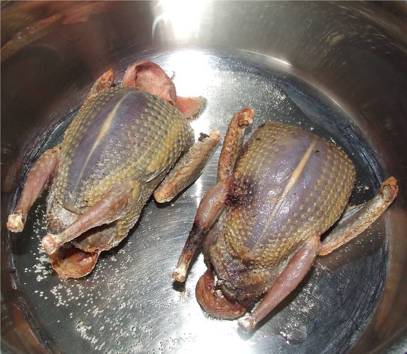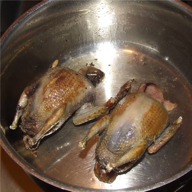 1-pour 2 personnes, plumer, vider, flamber les tourterelles 2-dans une casserole avec un peu d'huile, mettre
