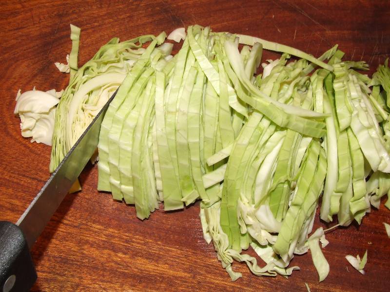 sont bien dorées, les retirer et réserver 3-mettre dans la casserole ayant servie à dorer les tourterelles, les échalotes hachées, la poitrine fumée coupée en lardons, les gousses d'ail et faire dorer à petit feu 4-quand le tout est bien doré, saupoudrer de farine, bien mélanger, faire légèrement roussir et déglacer avec le vin blanc en grattant le fond de la casserole afin de bien décoller les sucs de cuisson, remettre les tourterelles dans la casserole, saler et poivrer légèrement, ajouter le brin de thym et faire cuire à couvert sur feu doux pendant 20 minutes 5-pendant ce temps, enlever les feuilles du chou qui sont abîmées, couper le chou en quatre, enlever le trognon, couper les quartiers en fines lanières, les rincer et bien les essorer |